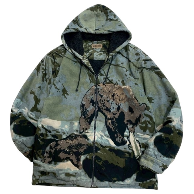 今年の漢字はまさかの"熊" 迫力満点グリズリー総柄フリースジャケット! 前後でちゃんと柄が違うの良いですね。 迷彩っぽい要素もあって◎ 裏地はあったかボアフリース。 着るとカッコいいので是非! 《Size》: 表記 L 肩幅 61cm 身幅 67cm 着丈 81.5cm 袖丈(肩から袖口) 68cm 《Color》: 《Quality》: 100% polyester 《Condition》: Used ボディの目立つダメージや汚れは特に見受けられません。 《Attention》 ※ページトップの『※購入前に必ずご一読下さい※』を必ずお読み頂きご理解の上、購入手続きをよろしくお願いします。 ※サイズは平置き採寸になります、若干の誤差が生じる場合がございます。 ご理解の程宜しくお願い致します。 ※お使いのモニター・液晶によって実際の色味と異なる場合がございます。