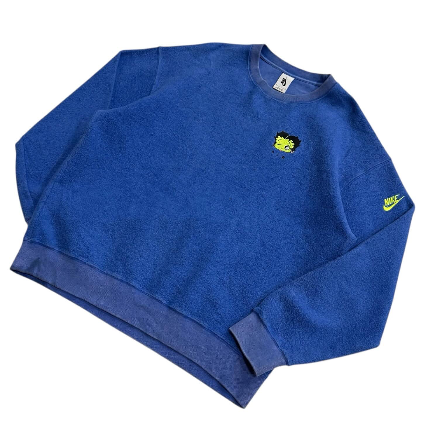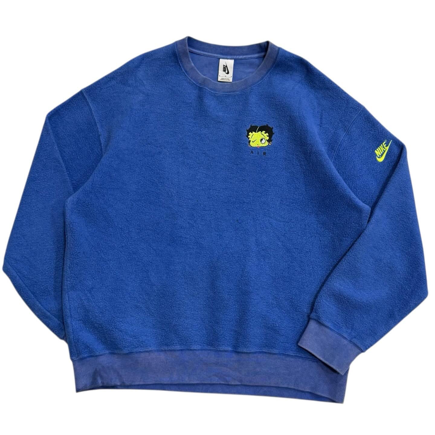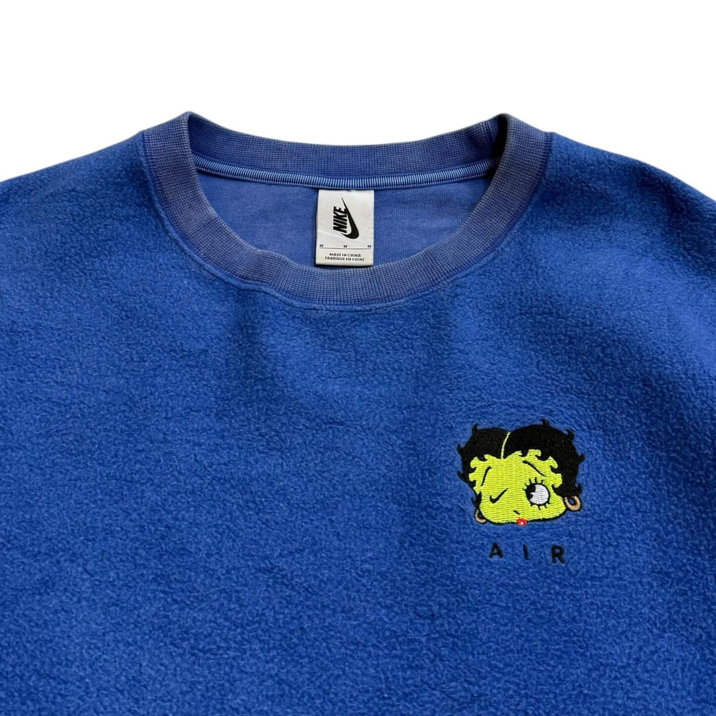 コラボのエアフォース1にも採用されている、Betty Boop(ベティ)の片目がスウォッシュになっているデザインのこちらは、配色も相まってとてもポップでそれでいて特別感のあるフリースクルーでオススメな1枚です。