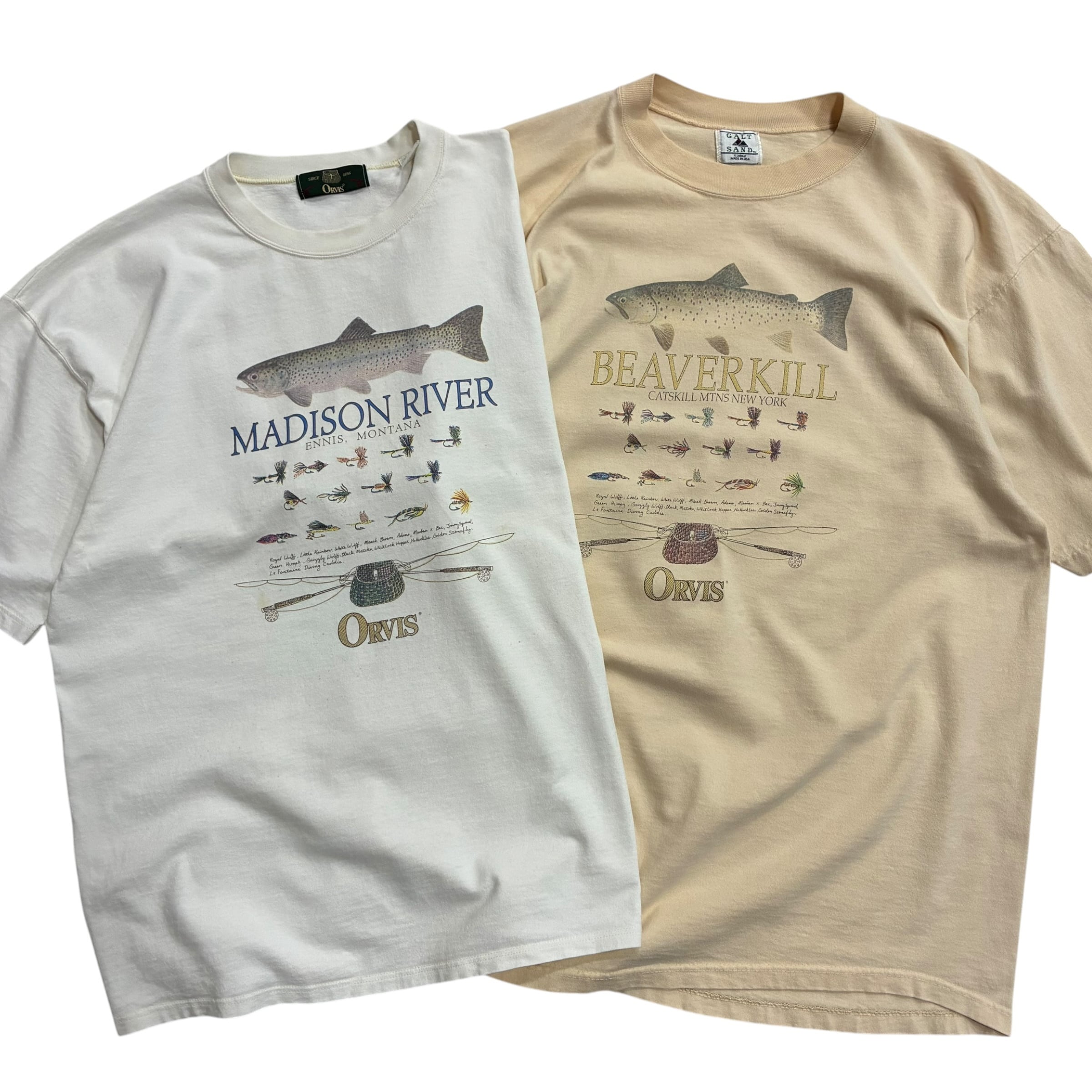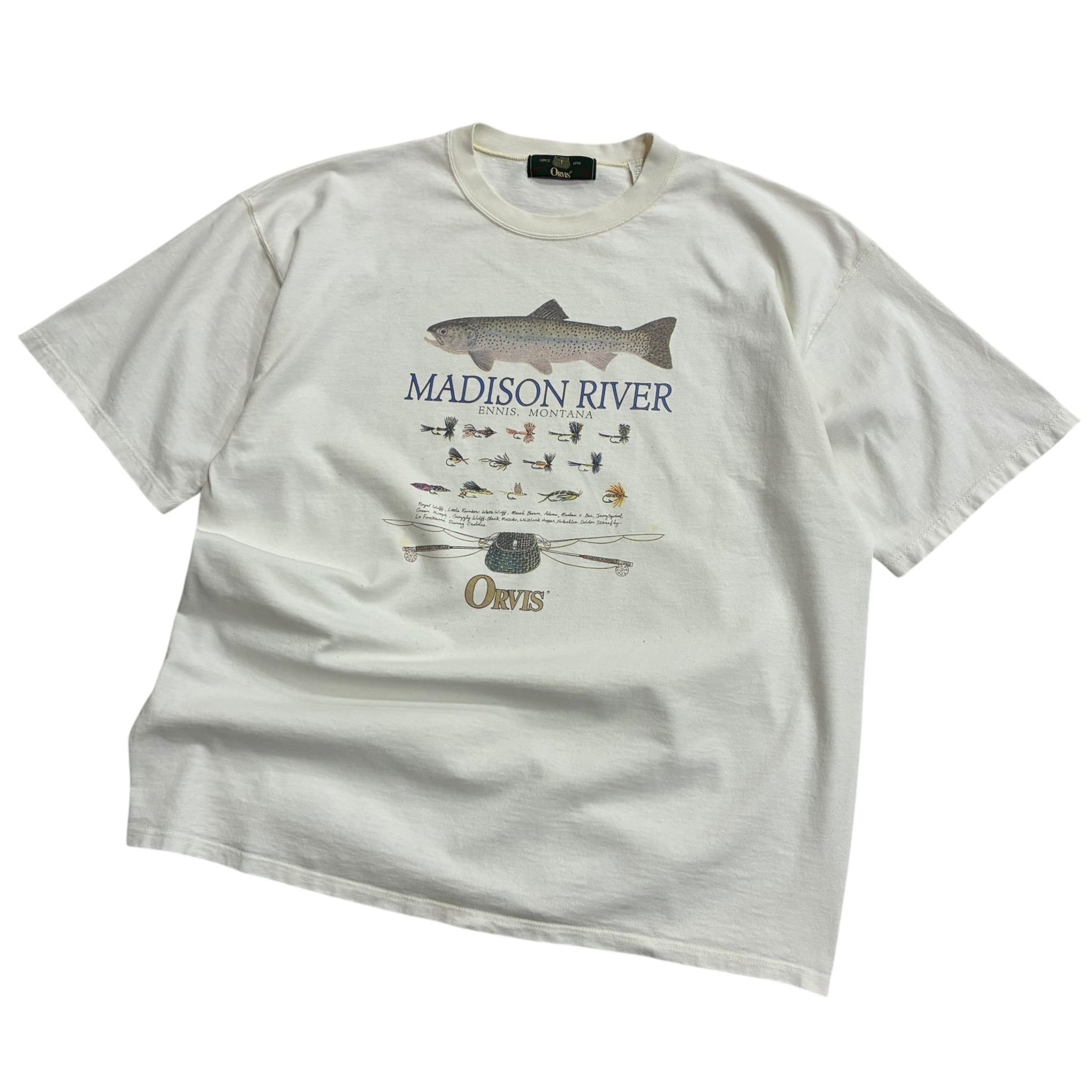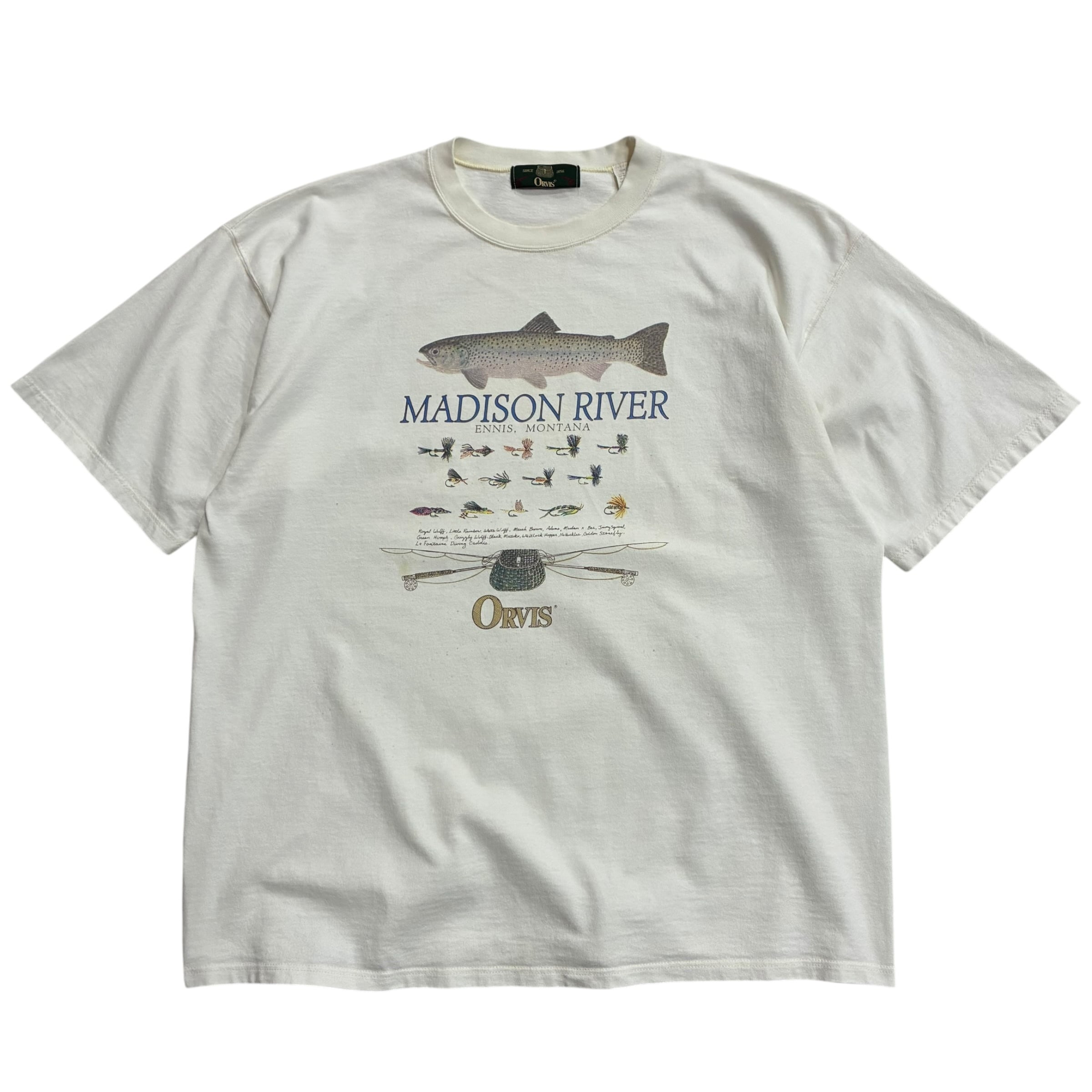 90年代USA製 ORVIS のフライフィッシング聖地シリーズ名作プリントTee がカラー&サイズ違いでの嬉しい入荷です!