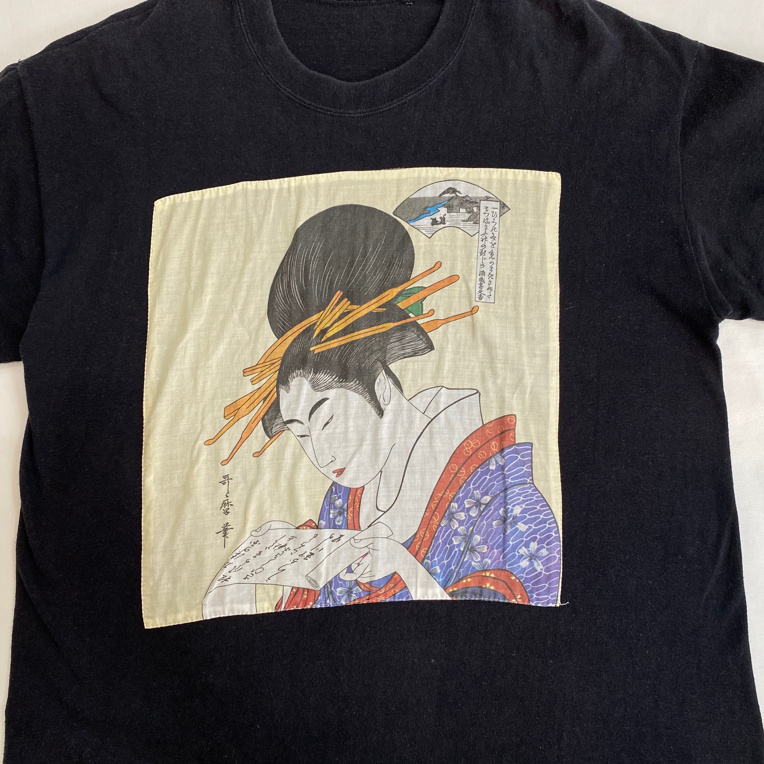 黒のボディに多分古めなのであろう浮世絵を付けてるTシャツ!!