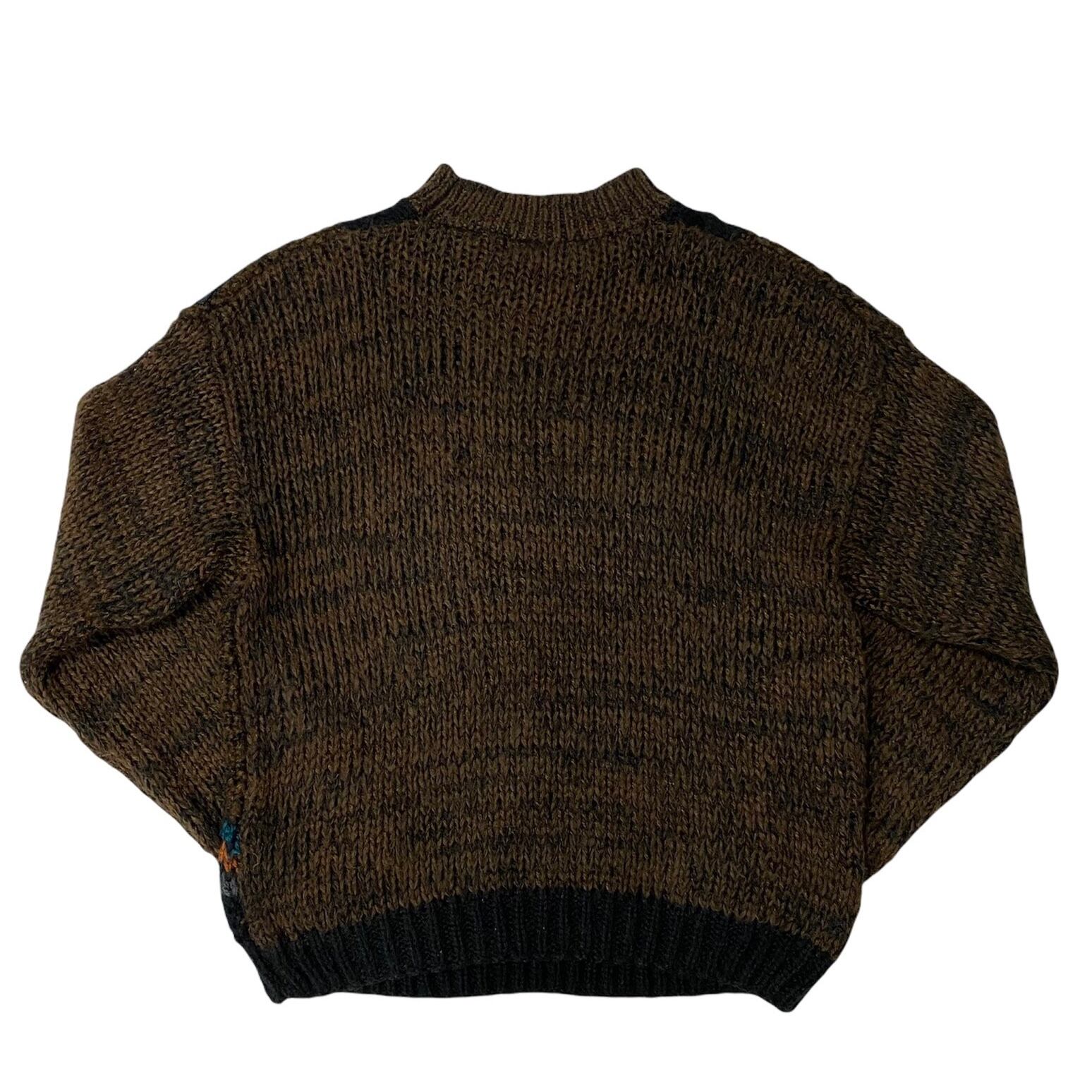 様々な柄が織り込まれていて、ニット両肩のレザーがキイてます!