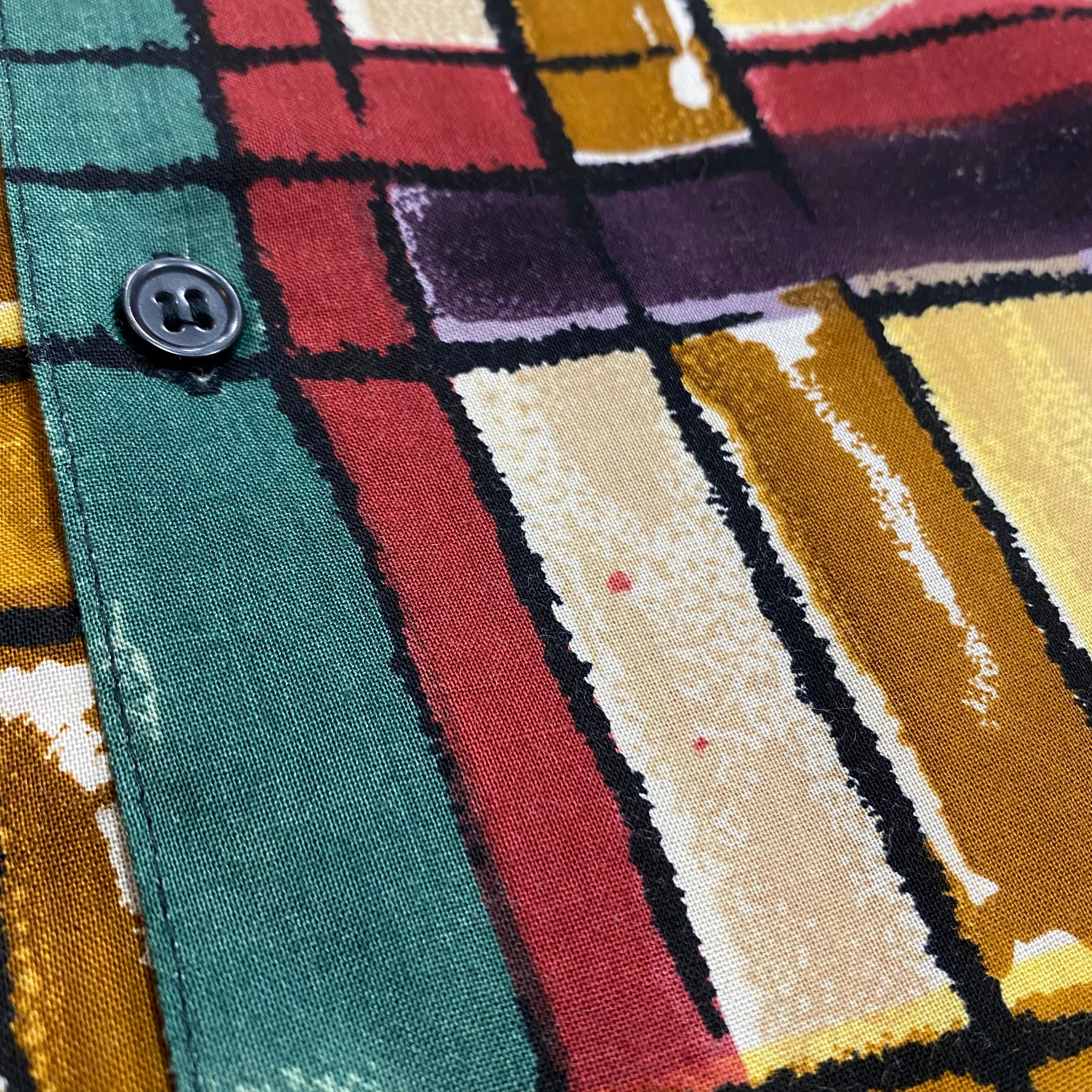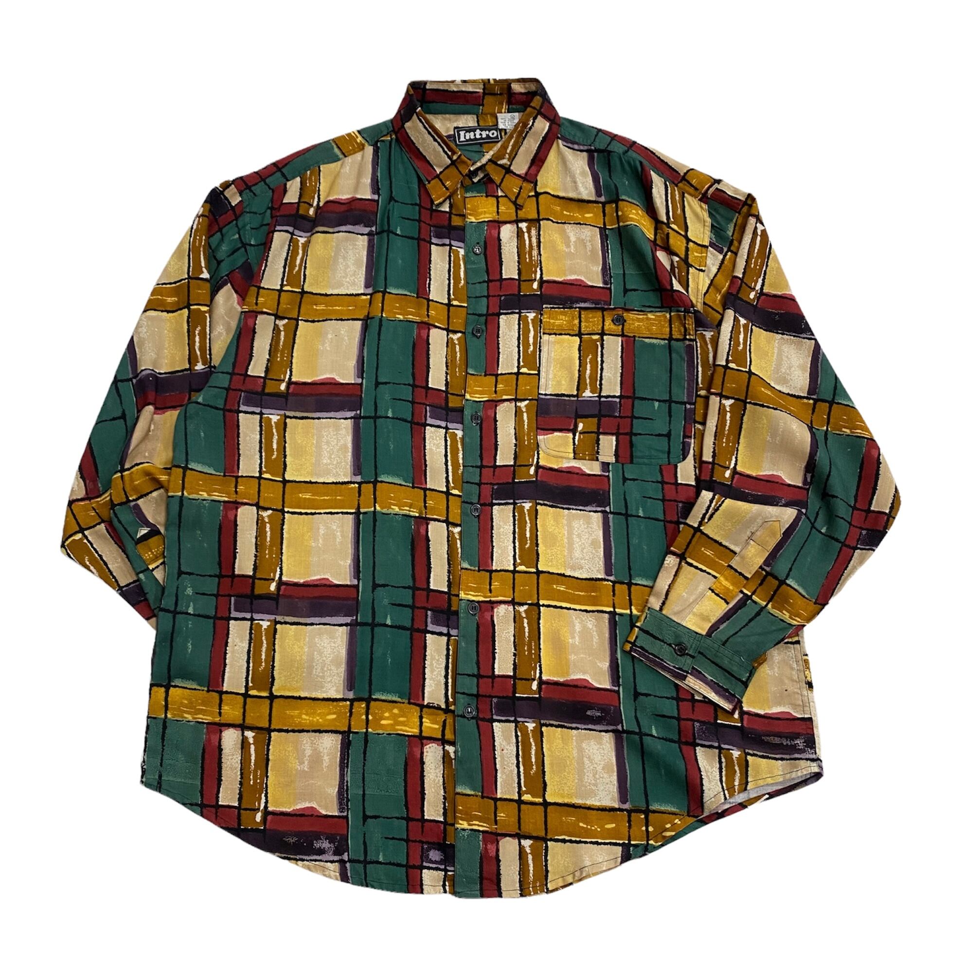 "アート" 総柄 Rayon Long Sleeve Shirt