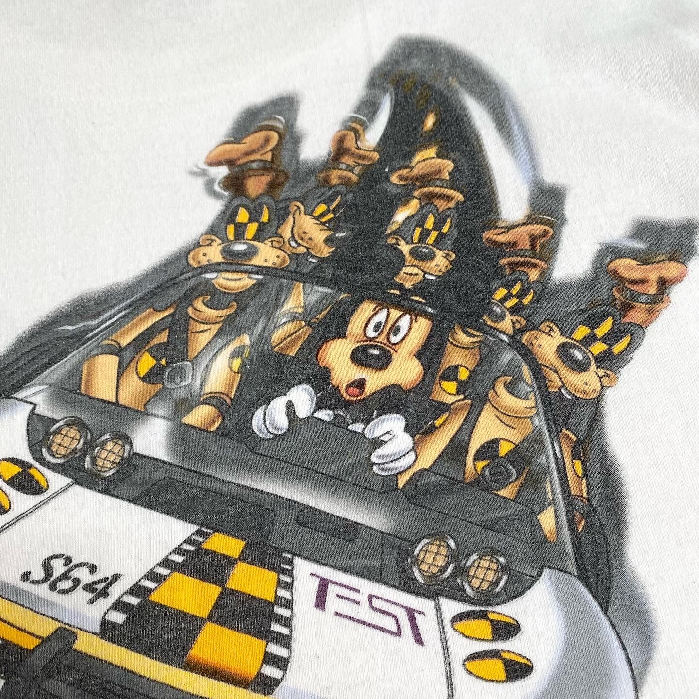 衝撃実験のダミー人形に扮したグーフィと、良い顔したミッキー!