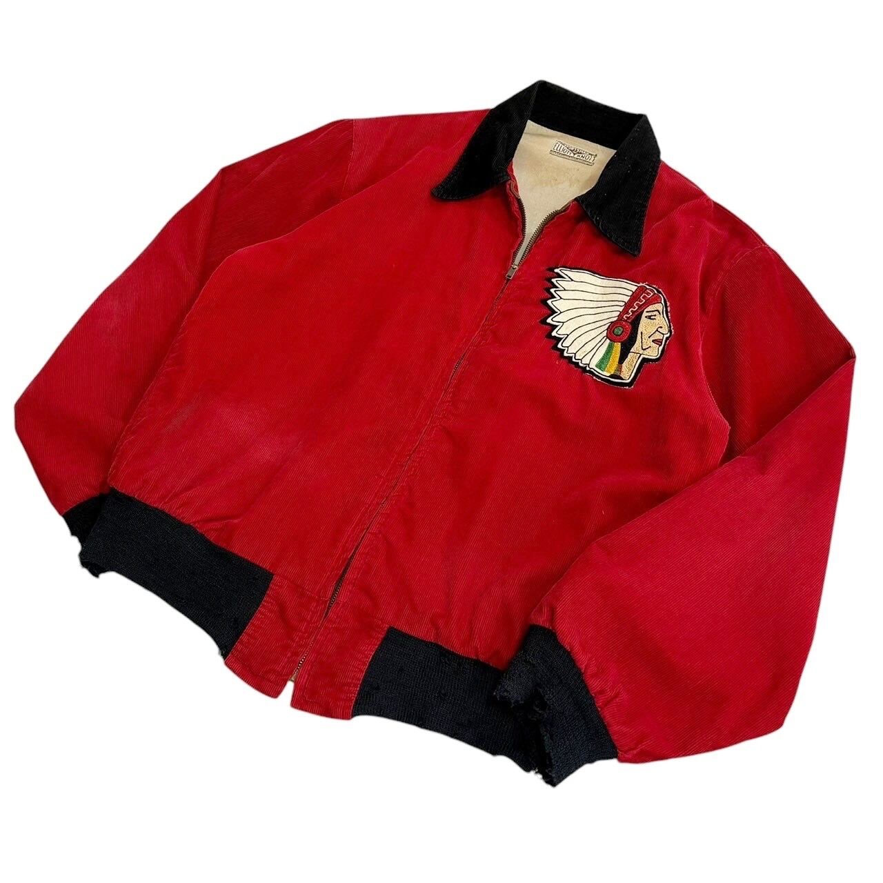 赤×黒のツートンボディに胸元のインディアンヘッドワッペン、バックの三段チェーンステッチと VINTAGE の良いとこ取りなジャケットです!